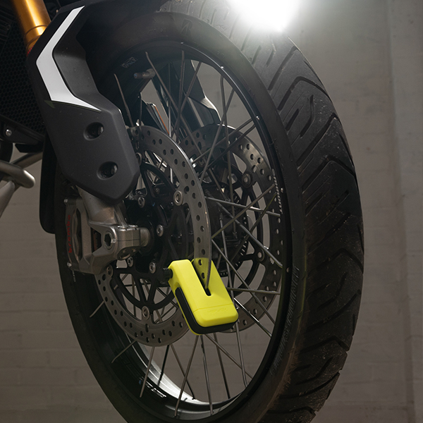 Ultimate security disc lock using innovative material technology, proven to withstand severe and sustained angle-grinder attacks. MD1000 is tested and proven to the highest security standards, carrying both the Diamond Sold Secure and ART 4* ratings. Compact, with carry case and unique rubber reminder cable included, MD1000 is the next generation in portable motorcycle security.