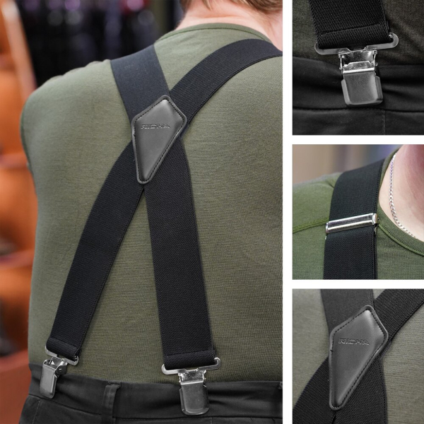 Keep your riding gear perfectly in place with RICHA Motorcycle Braces, designed for maximum comfort & durability. Made from a high quality polyester & elastic blend, these extra wide 50mm elastic braces provide a secure fit without compromising flexibility. The strong metal teeth clips ensure a firm grip on your trousers, while the genuine leather patch adds a premium touch.