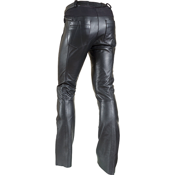 Cowhide leather with textile stretch panels for superb fit. Boot cut, CE armour and short jacket link zip.