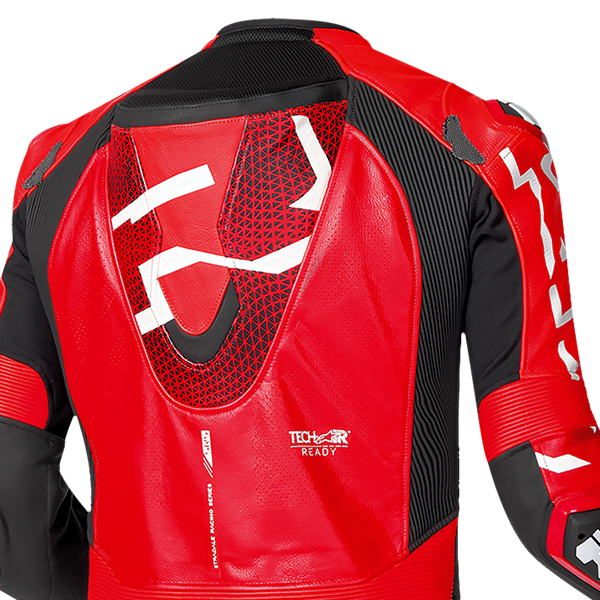Designed with the racer in mind, the Stradale includes a speed hump that enhances aerodynamics and adds an extra layer of safety. The suit's sleek profile reduces drag, while strategically placed perforations ensure optimal airflow, keeping you cool and comfortable during high-intensity rides. The pre-curved sleeves and legs enhance the natural riding position, reducing fatigue and increasing maneuverability.