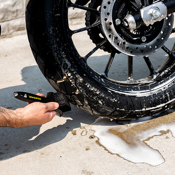 Keep your tyres spotless with the RIDERR Tyre Brush, crafted for efficient and thorough cleaning. Featuring a long handle for easy scrubbing, this brush ensures you can reach every part of your tyres with minimal effort. Equipped with durable stiff bristles that lift dirt and debris from your tyres without scratching, ensuring your tyre stays clean and damage-free.