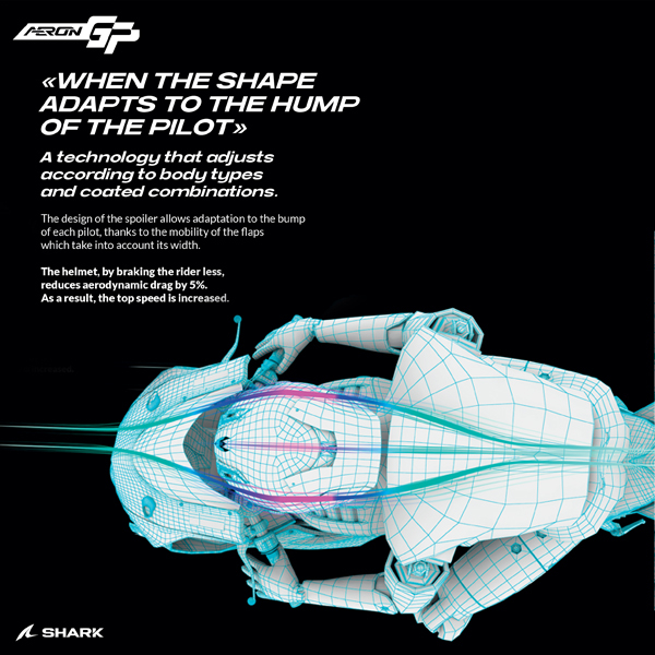 The AERON GP, designed for MOTOGP racers and circuit enthusiasts, is revolutionising the world of helmets. It is t ... he first helmet in the world to adapt to the racer's position thanks to cutting-edge, patented technology: the Adaptive Aero System, A2S.