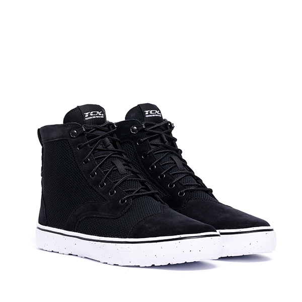 Certified motorcycle shoes featuring an urban modern look, perfect for everyday commuting. Aerated, made of mixed fabrics and with suede toe guards for shifting gear. Offering comfort, protection and versatile style every day, even on the hottest days.